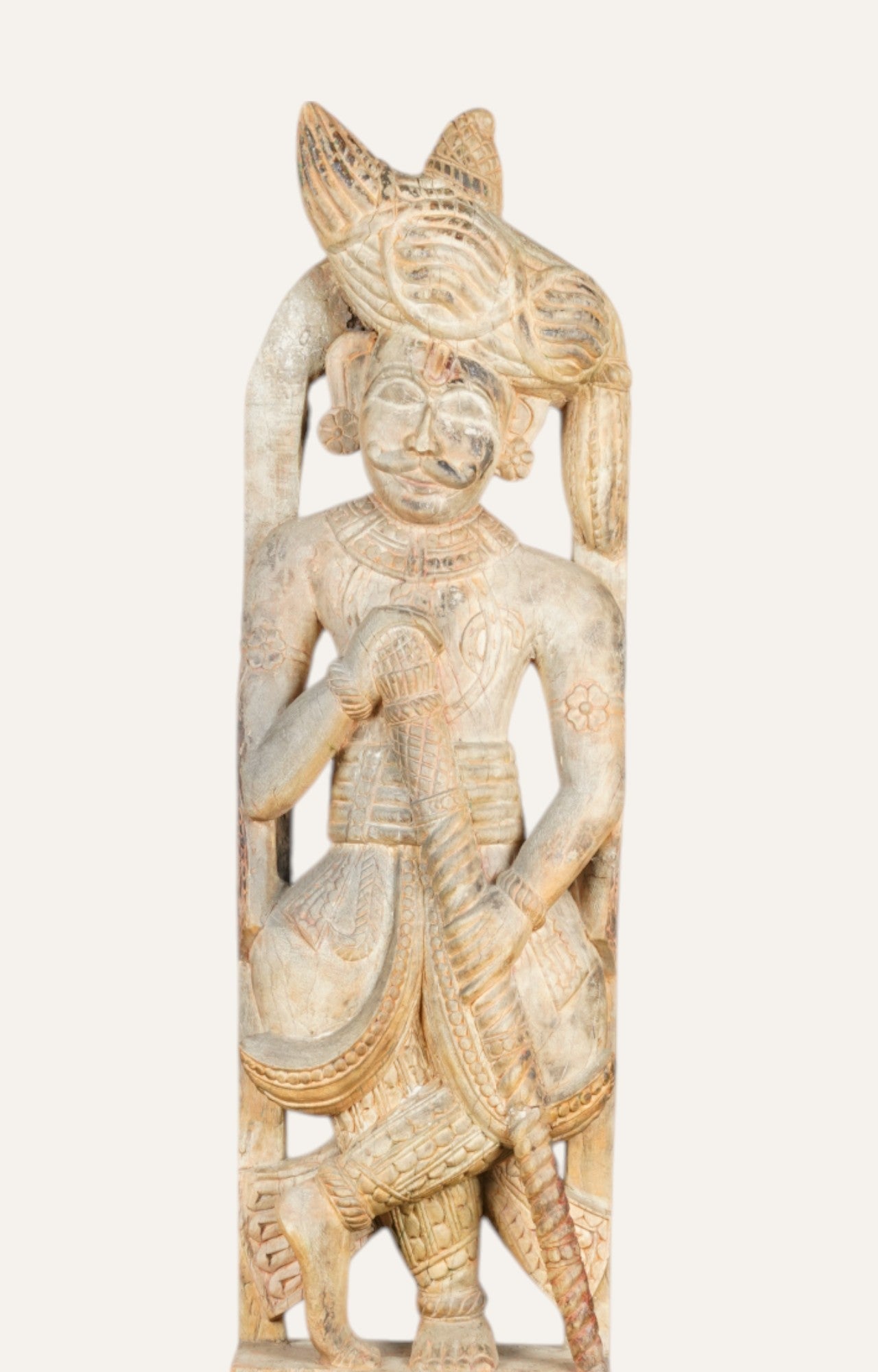Vintage Wooden Dwarpal Statue – Decorative Regal Gatekeeper Showpiece
