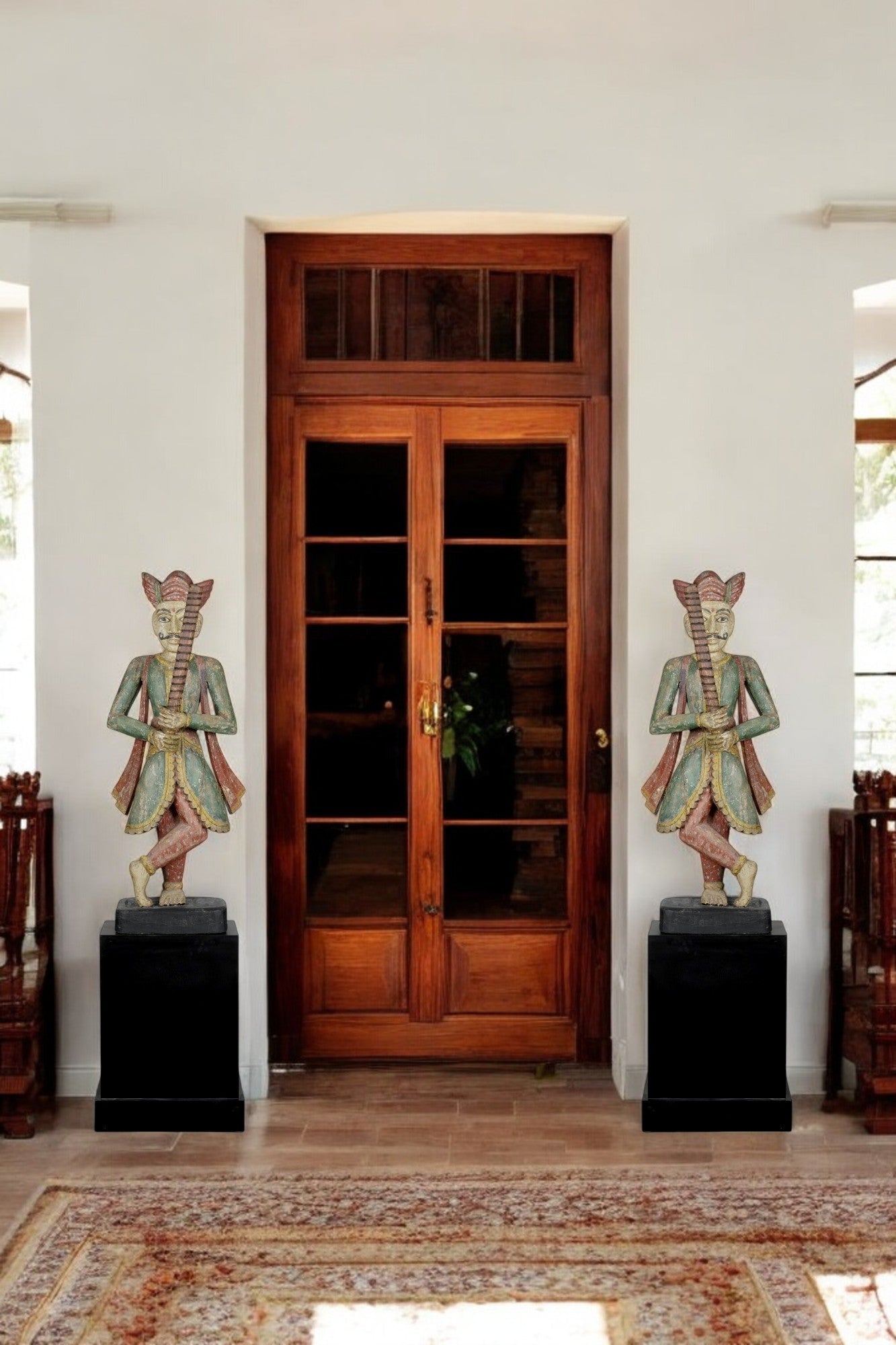 If you are also in search of a noble piece to elevate your home or office entrance, then this single Dwarpal (The Gatekeeper) figure can be the right choice. Designed to represent ancient temple guardians, it is a statement of legacy and artistry. Hand-sculpted from premium teak wood, its fine detailing and upright posture radiate strength and honour. Ideal for solo display or pairing with complementary decor, this piece blends well into both traditional and eclectic settings. Buy this to celebrate India’s artistic legacy or to present a thoughtful cultural gift.