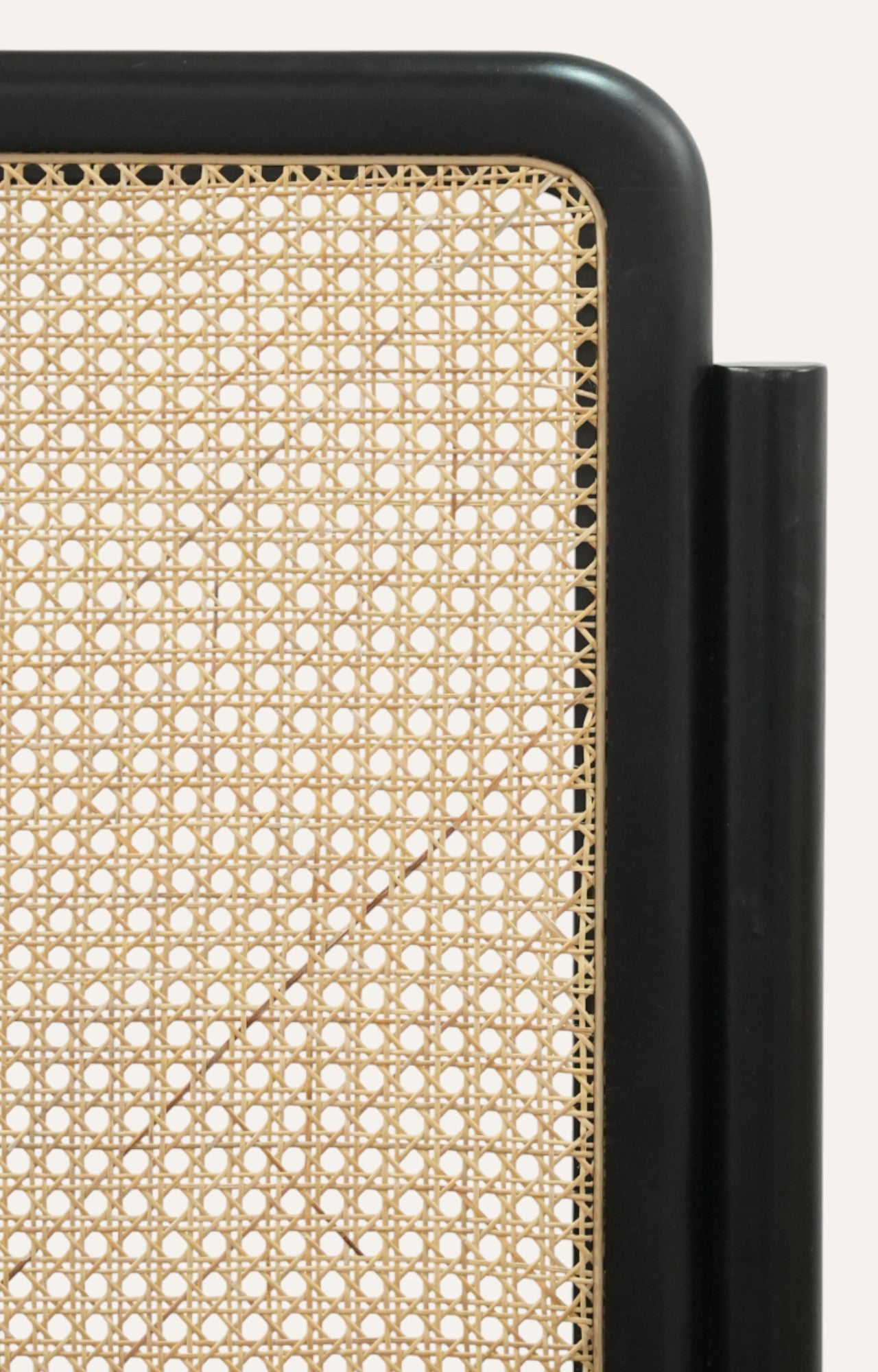 This bed blends modern simplicity with natural warmth, featuring a sturdy acacia wood frame paired with handwoven rattan panels in both the headboard and footboard. The rattan inserts provide a beautiful organic texture and airflow, while the dark acacia wood outlines lend definition and a contemporary touch. This harmonious combination of materials brings a relaxed yet sophisticated atmosphere to any bedroom, making it a versatile centerpiece for a variety of interior styles.