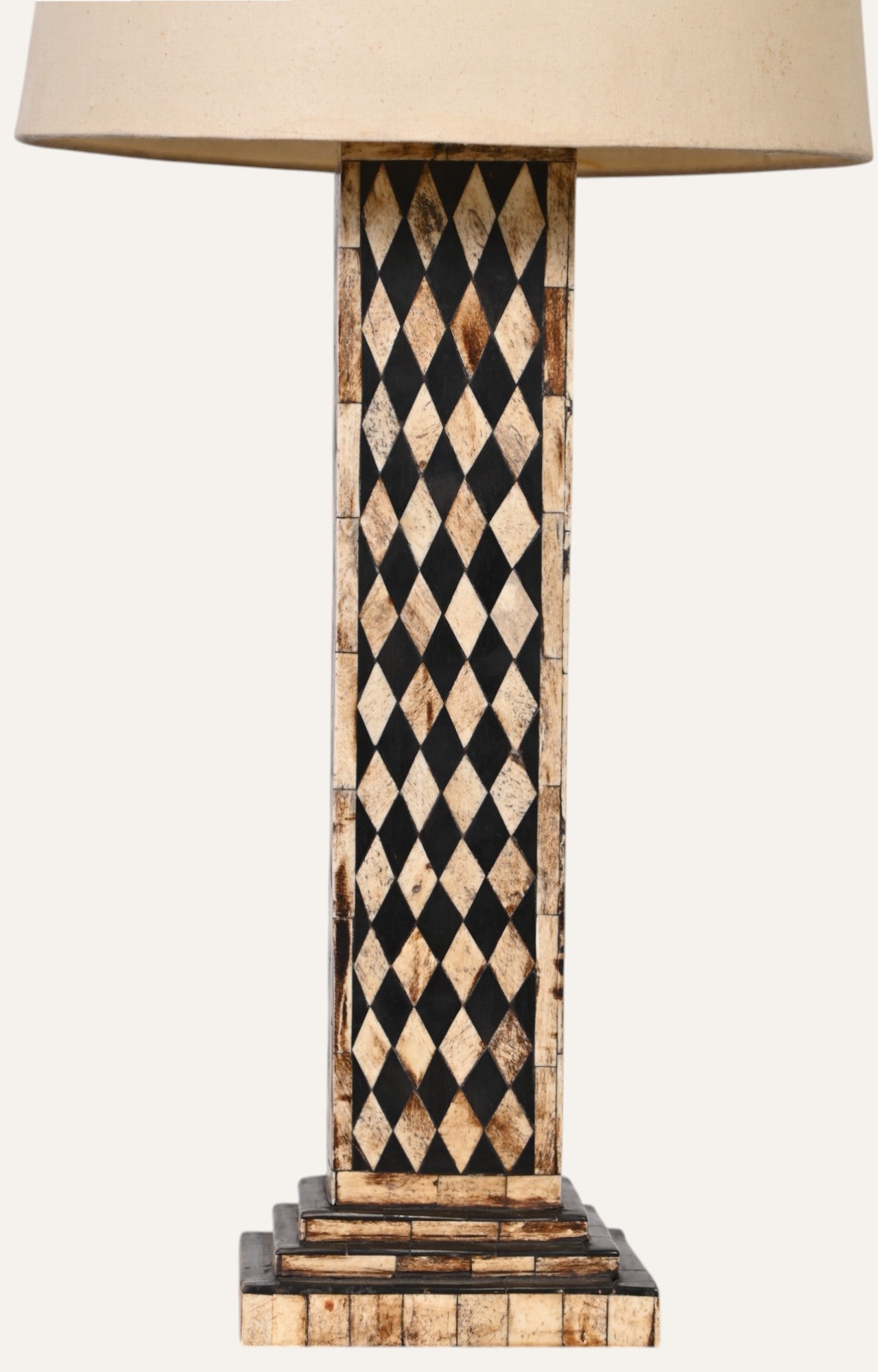 This beautiful bone table lamp adds a soft, natural touch to your space with its amazing Argyle print and unique bone base and warm beige fabric shade. Its clean design and neutral tones make it perfect for brightening up any room. Whether on a nightstand, desk, or side table, it offers just the right amount of light and character. Simple yet striking, this lamp is a perfect addition to any home decor.