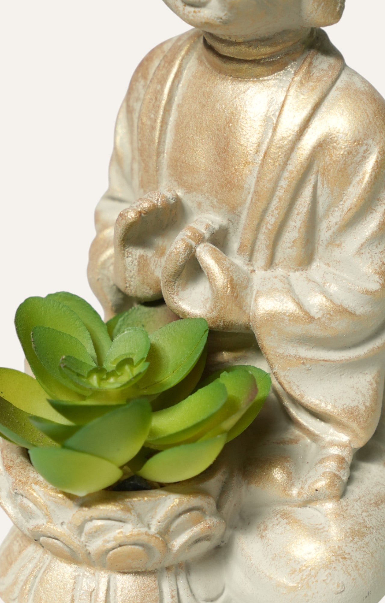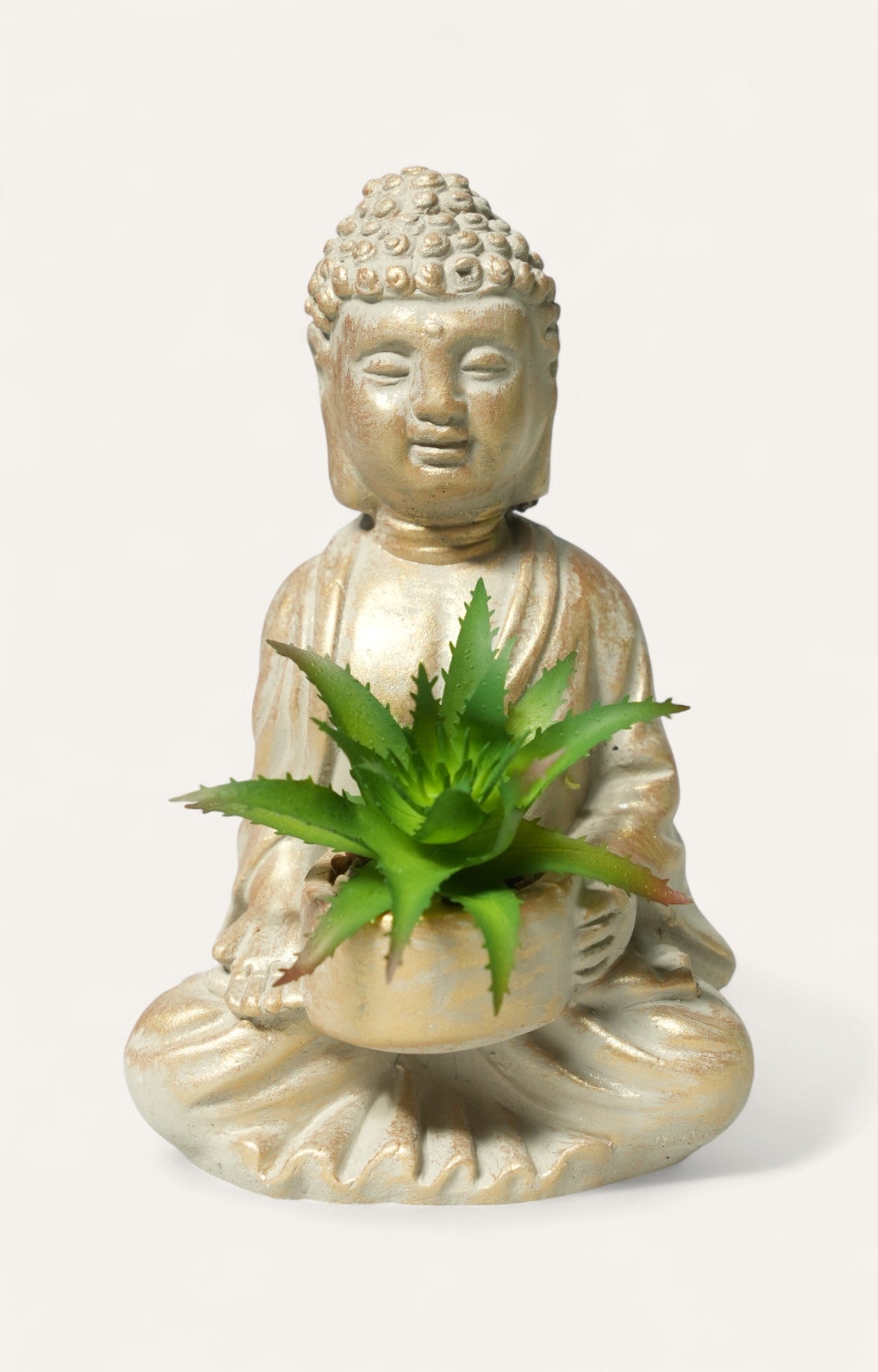 This Buddha Figurine Set combines cared from resin with a weathered stone finish. Ideal for creaking a Zen-inspired corner, these pieces bring tranquility and harmony to tabletops, shelves, or mediation spaces.