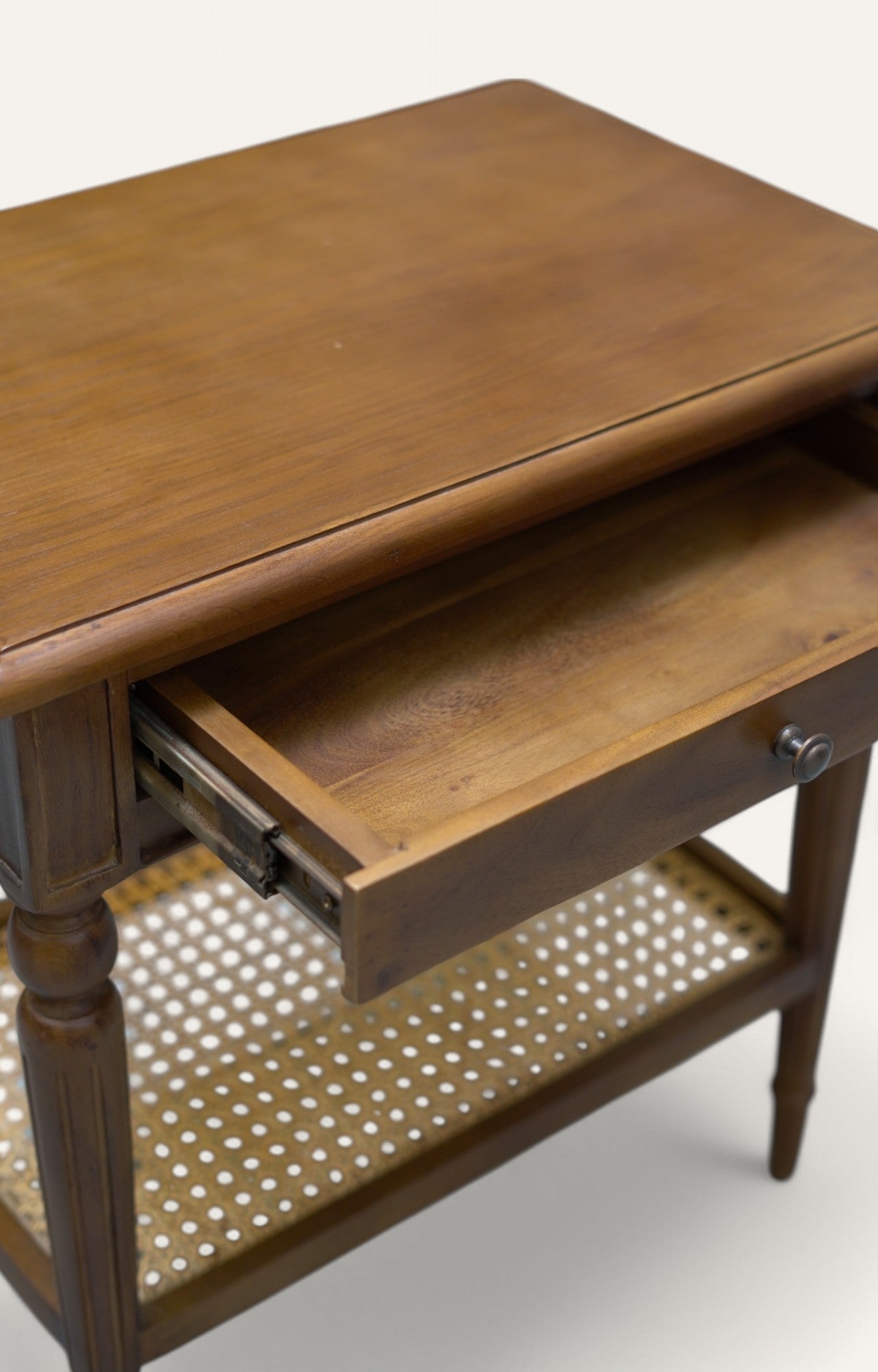 The Classic Rattan Night Stand adds natural charm to your bedroom. Crafted with a durable wooden frame and a rattan-detailed drawer, it combines style and practicality. The spacious drawer and open shelf offer ample space to store and display your essentials, making it a perfect companion for your bedside. Its neutral tones and timeless design make it easy to pair with any decor style.