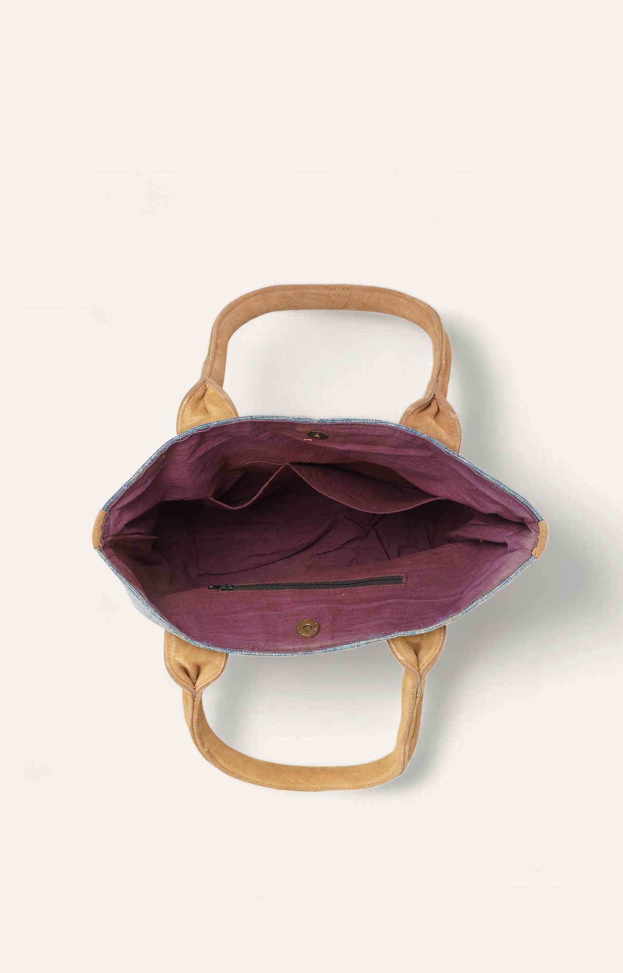 This chic eco-friendly tote bag features a bold striped design in indigo blue and off-white, adding a modern yet traditional touch to your accessories. Crafted from handwoven cotton dhurrie fabric, it combines durability with a stylish look. The suede leather handles ensure comfort and strength, making it the perfect choice for both everyday errands and casual outings.