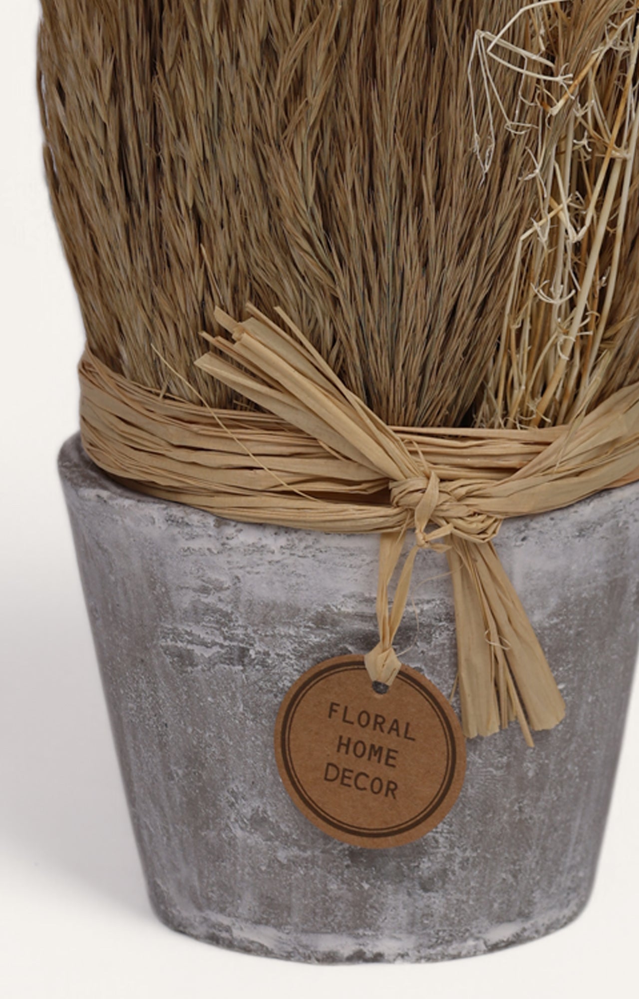 Add a touch of rustic charm to your home with this unique decorative piece. This arrangement showcases the beauty of real natural flowers and grains, artfully displayed in a charming cement pot. The natural elements and earthy tones create a warm and inviting ambiance, making it a perfect addition to any space.