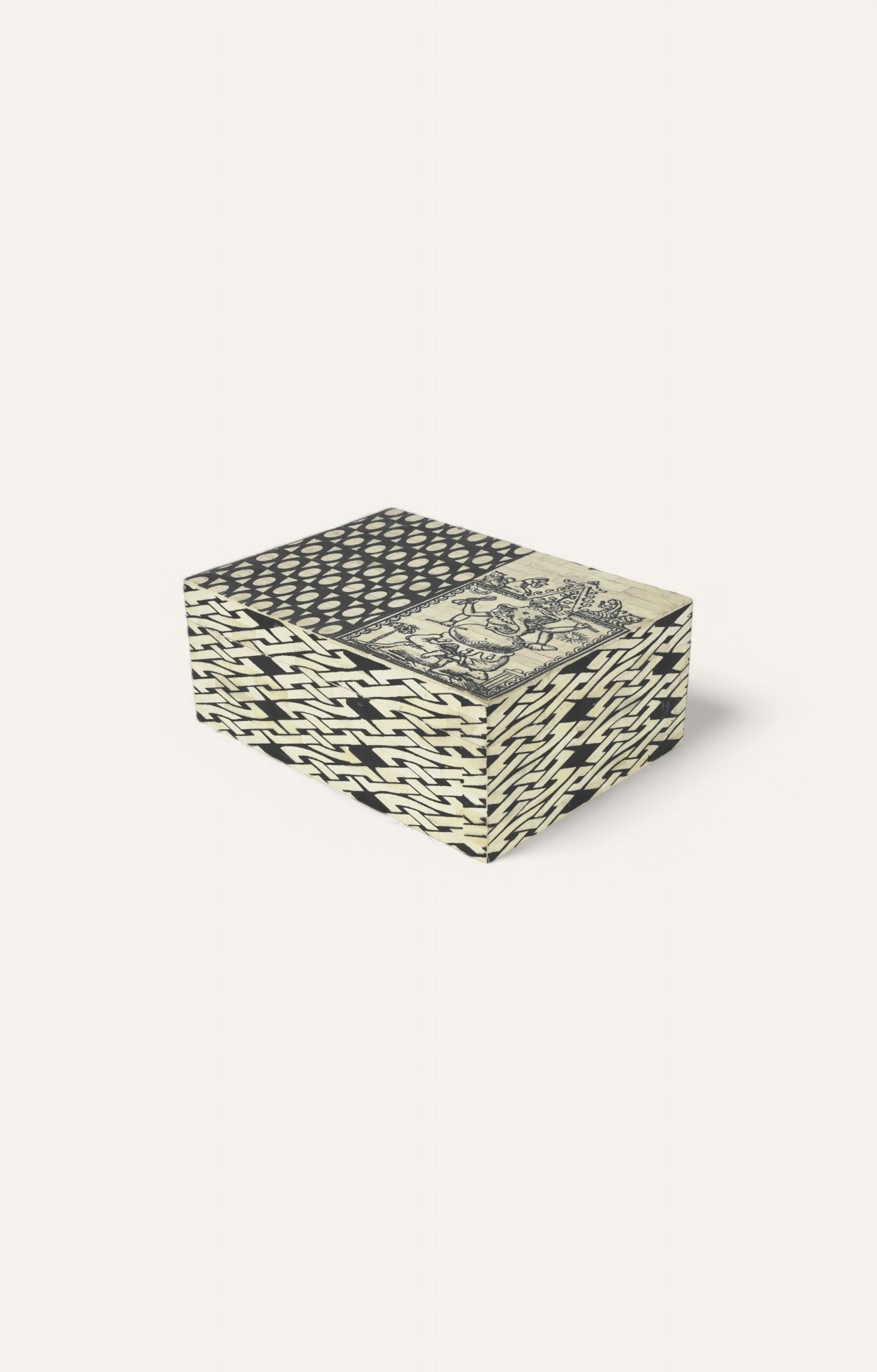 > Antique screen print on mango wood with bone cladded work