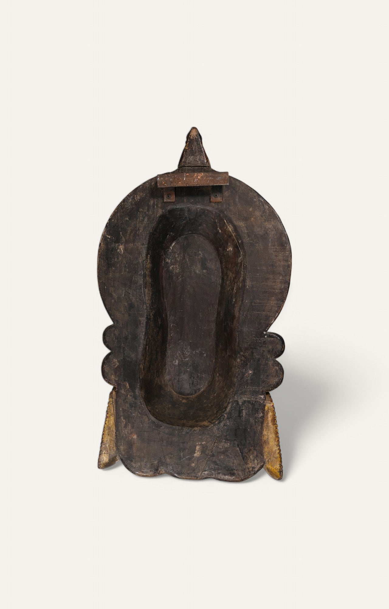 > Hand-carved wood with painted and embellished details