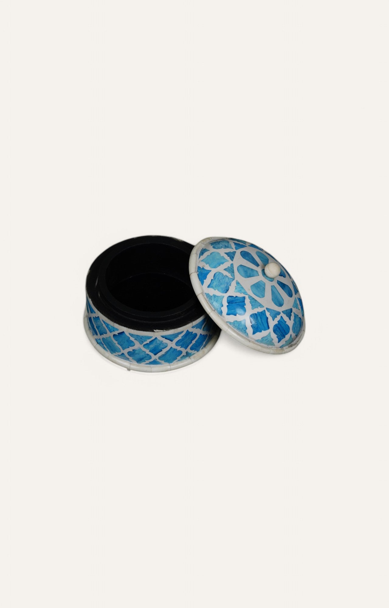 Handcrafted with intricate bone cadded work and a vibrant blue geometric pattern, this piece is more than just a decorative accent—it’s a statement of refined taste. Perfect for storing jewelry, trinkets, or keepsakes, this versatile box blends seamlessly into modern and classic interiors alike. Whether placed on a coffee table, dresser, or office desk, it adds a touch of heritage while serving a functional purpose.
