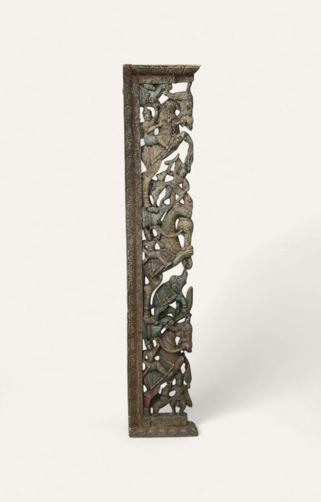 This striking wall bracket celebrates heritage with its finely detailed mythical carvings and warm, inviting hues. Its sturdy, curved structure is designed to hold decorative accents while adding a touch of cultural sophistication to your home.