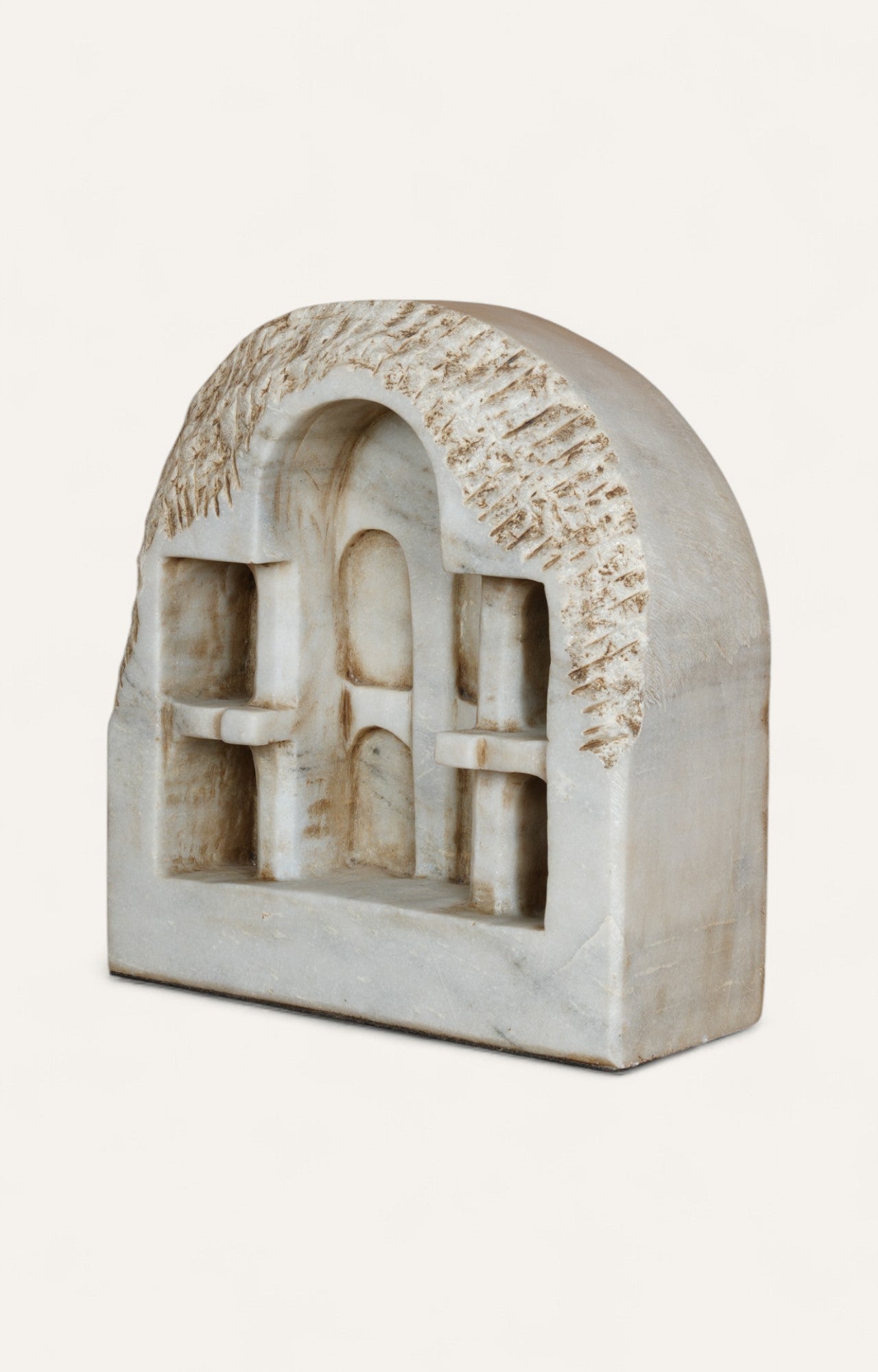 Our Marble Ruins piece is crafted from fine white marble, finished in a clean white tone. The sculptural form is inspired from the Athenian ruins. These bring the wonders of ancient Greece to life. Perfect as a statement accent, it adds quiet sophistication to any space from bedrooms to studies.