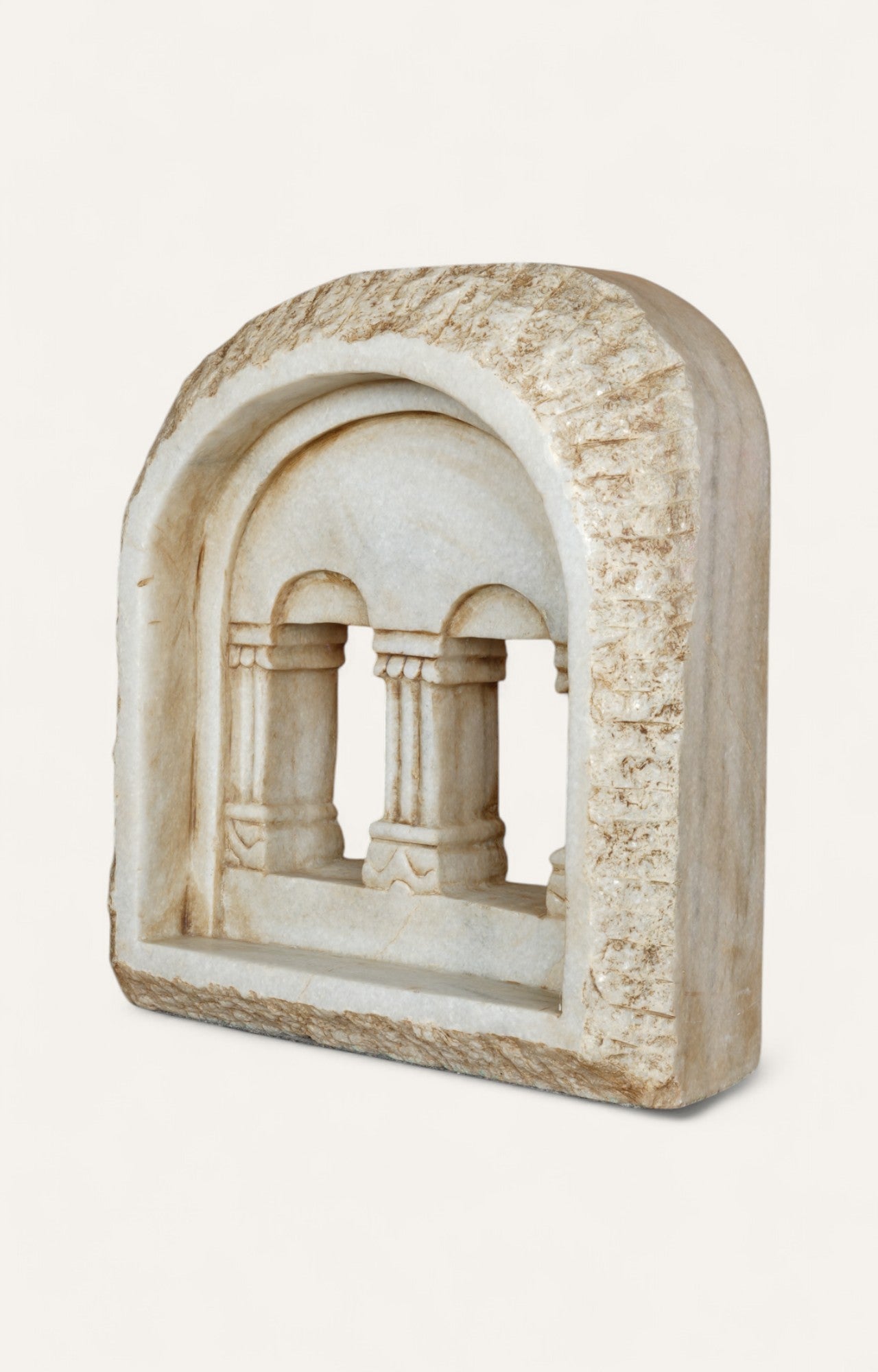 Our Marble Ruins piece is crafted from fine white marble, finished in a clean white tone. The sculptural form is inspired from the Athenian ruins. These bring the wonders of ancient Greece to life. Perfect as a statement accent, it adds quiet sophistication to any space from bedrooms to studies.