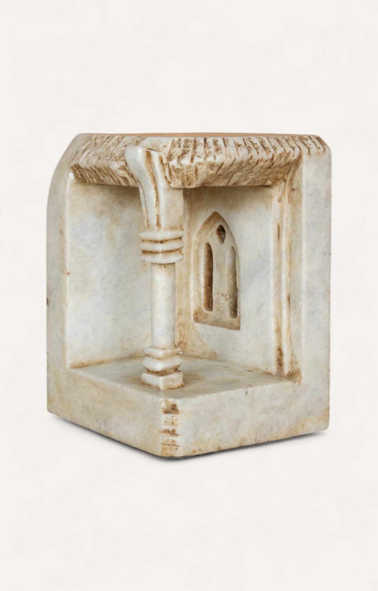 Our Marble Ruins piece is crafted from fine white marble, finished in a clean white tone. The sculptural form is inspired from the Athenian ruins. These bring the wonders of ancient Greece to life. Perfect as a statement accent, it adds quiet sophistication to any space from bedrooms to studies.