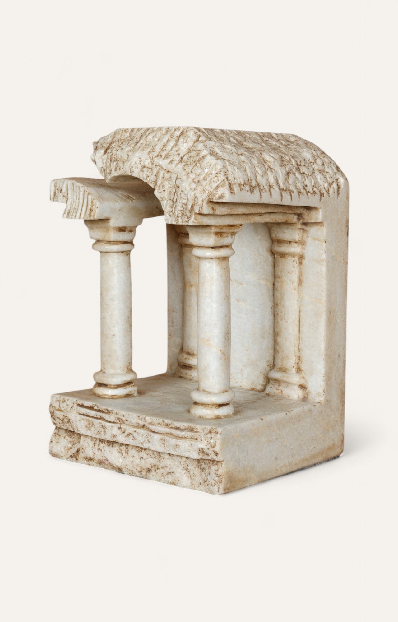 Our Marble Ruins piece is crafted from fine white marble, finished in a clean white tone. The sculptural form is inspired from the Athenian ruins. These bring the wonders of ancient Greece to life. Perfect as a statement accent, it adds quiet sophistication to any space from bedrooms to studies.