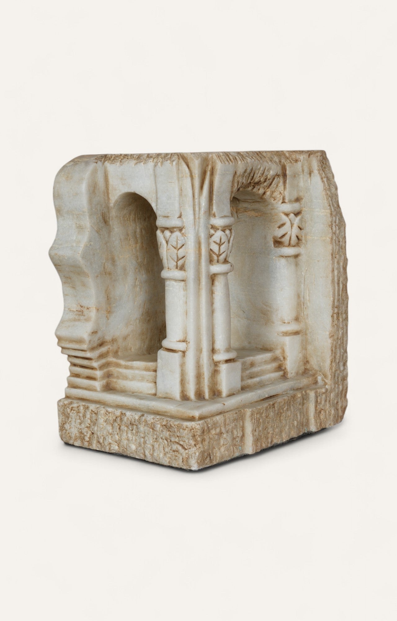 Our Marble Ruins piece is crafted from fine white marble, finished in a clean white tone. The sculptural form is inspired from the Athenian ruins. These bring the wonders of ancient Greece to life. Perfect as a statement accent, it adds quiet sophistication to any space from bedrooms to studies.