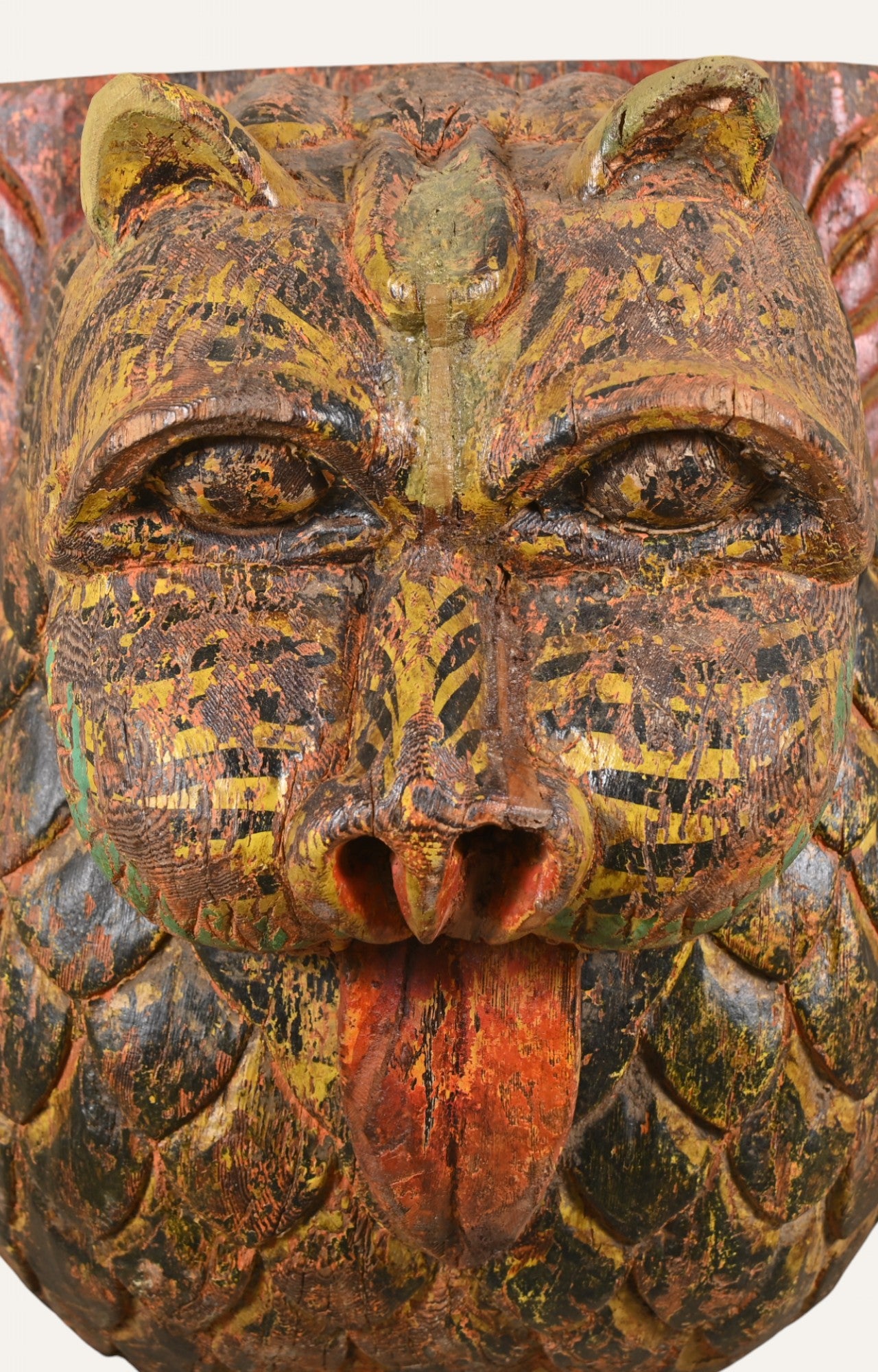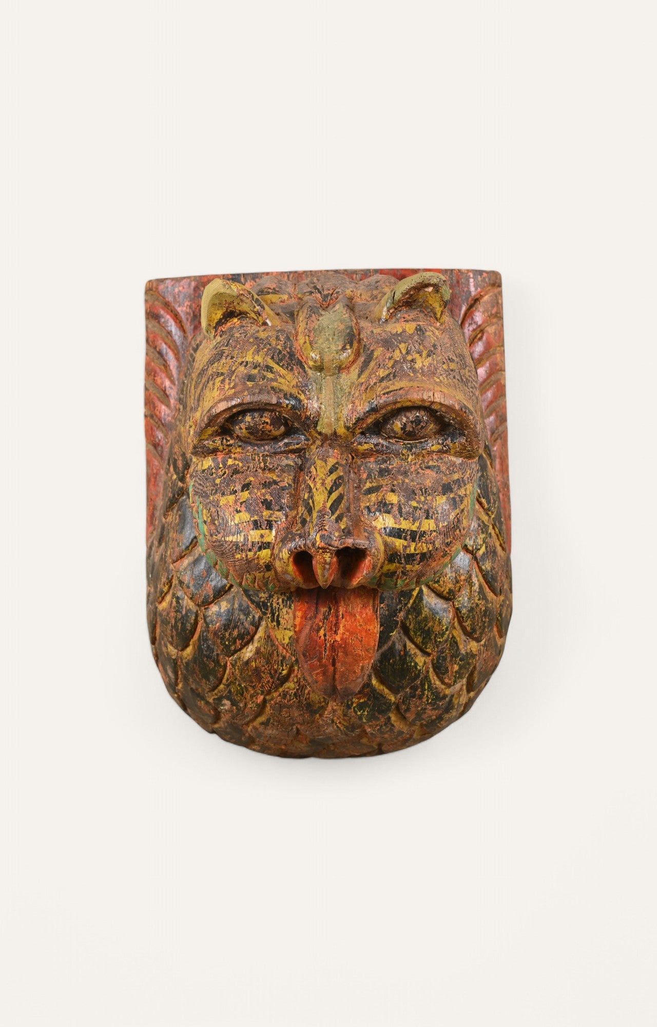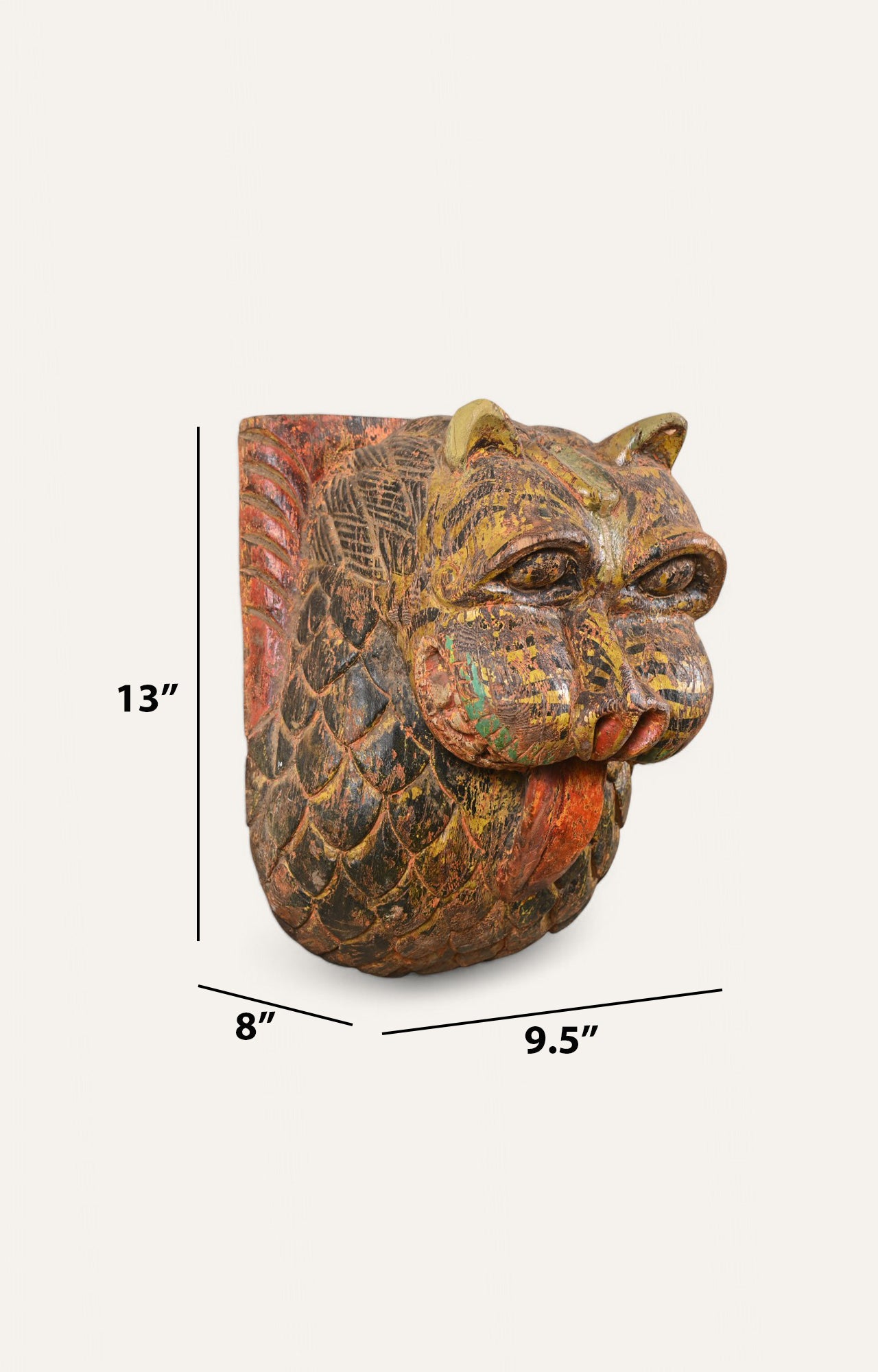 A striking blend of artistry and tradition, this hand-carved wooden wall bracket showcases a mythical beast with fierce detailing and an aged finish. The intricate craftsmanship highlights the creature’s scaled texture, powerful gaze, and bold features, making it an eye-catching accent for eclectic and traditional interiors.