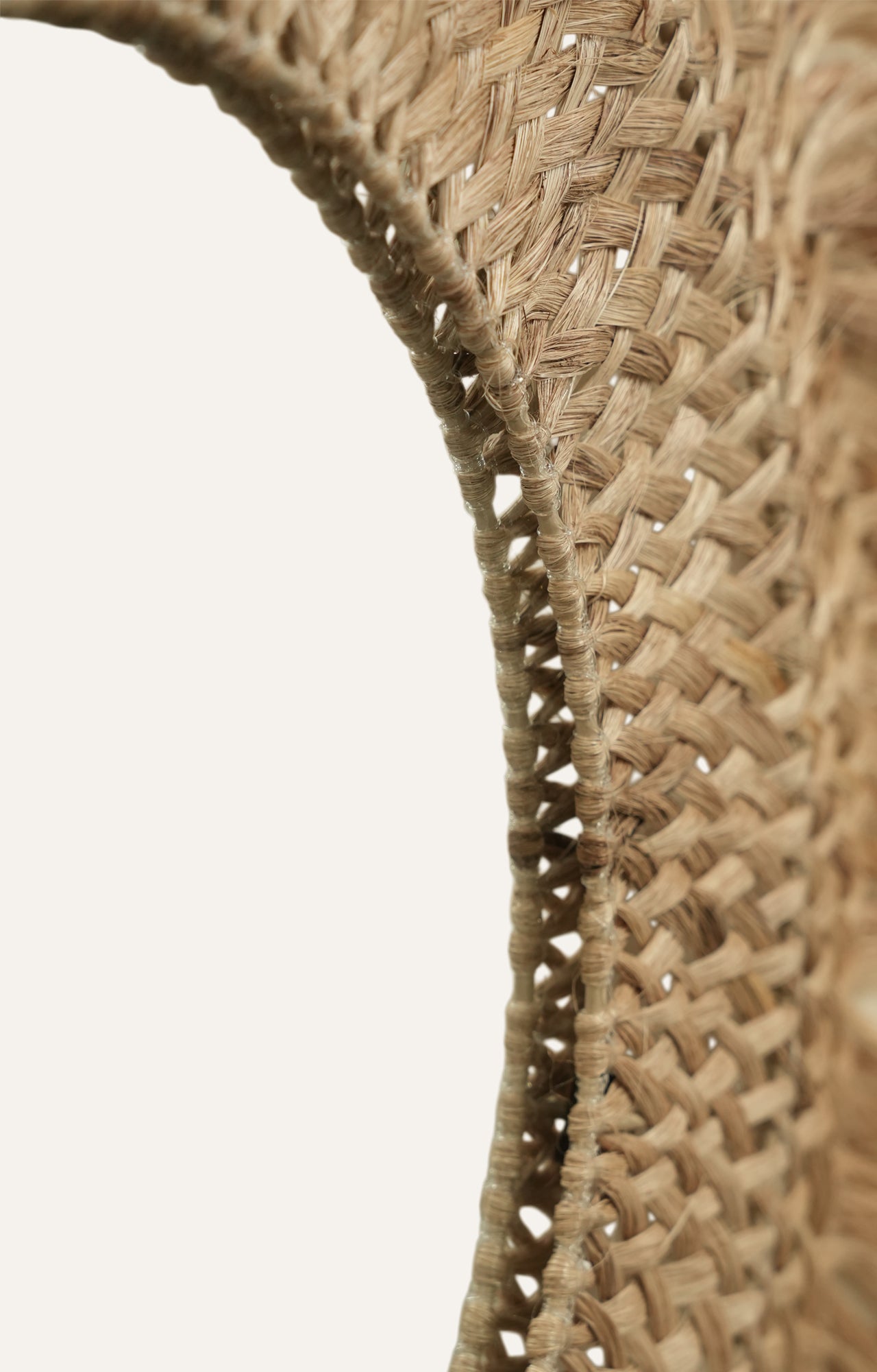 Rattan sea grass strands are layered together by skilled hands to frame this round mirror most beautifully. This combines artisanal craftsmanship with organic style to reflect just the right amount of light and serenity. The soft, natural fringe enables it to lend both depth and rhythm to modern, coastal, or bohemian spaces.