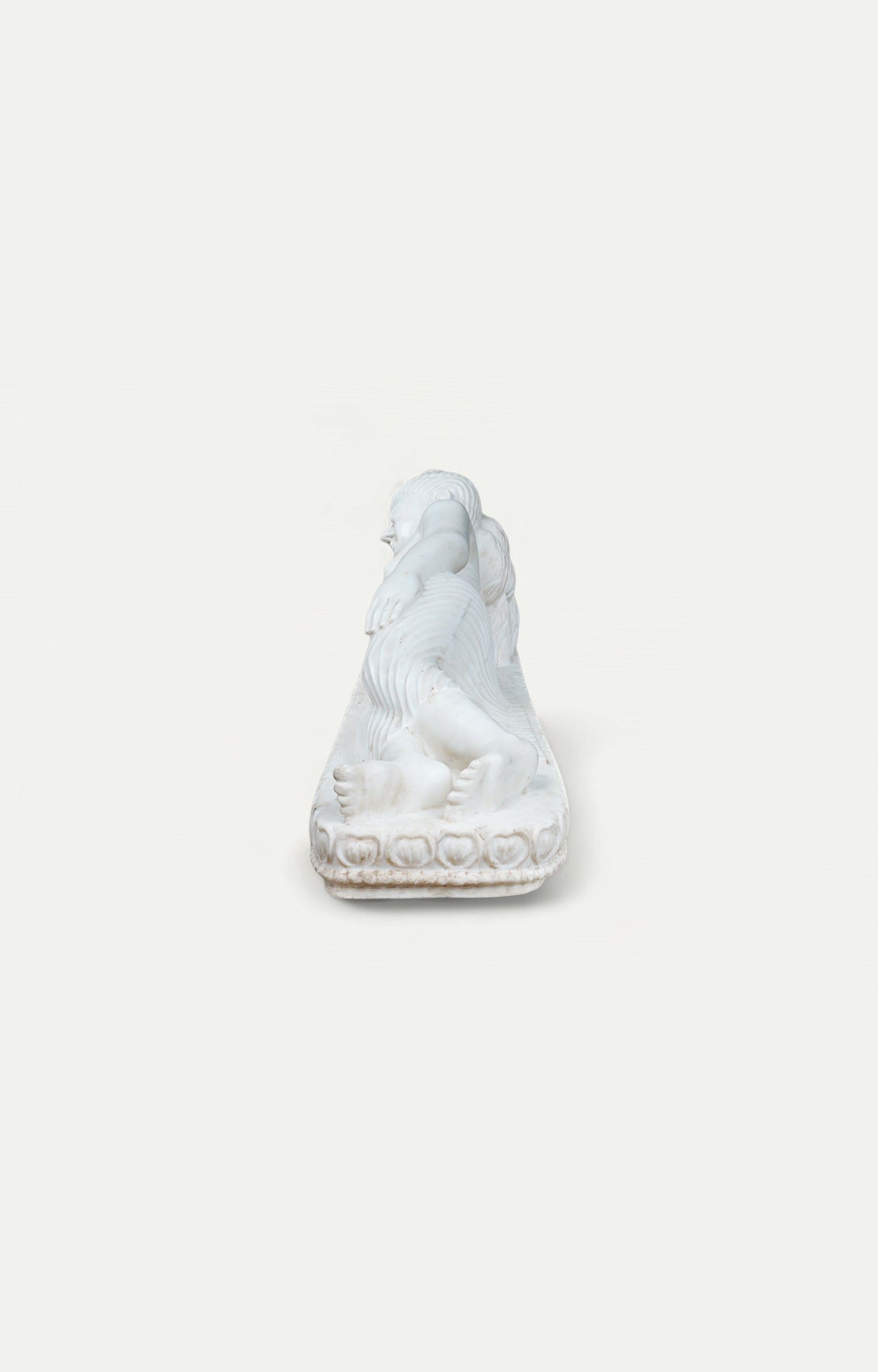 The Reclining Buddha marble statue represents peace, enlightenment, and the Buddha's final earthly moments. Handcrafted with intricate detail, it brings a sense of calm and spiritual connection, making it an ideal piece for meditation spaces or tranquil decor.