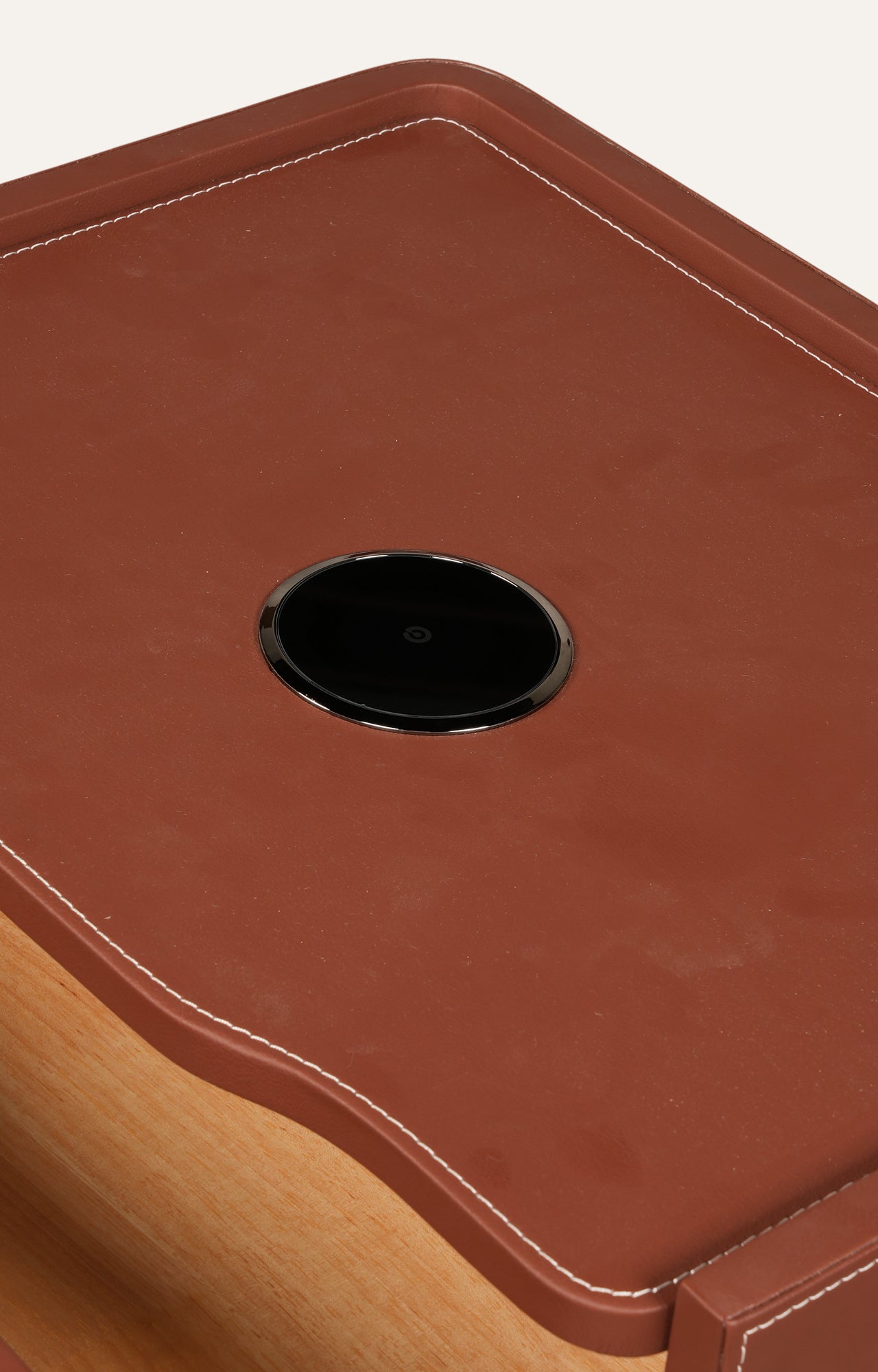This contemporary nightstand exudes refined elegance with its full leather upholstery in a warm chestnut tone. Featuring two spacious drawers with distinctive oval cutout handles, it combines functionality with a sleek, minimalist aesthetic. The contrast stitching adds a touch of craftsmanship and visual detail, while the smooth, rounded edges lend a soft, modern silhouette. Perfect for bedrooms or lounges, this piece offers stylish storage and a sophisticated accent to any interior décor.