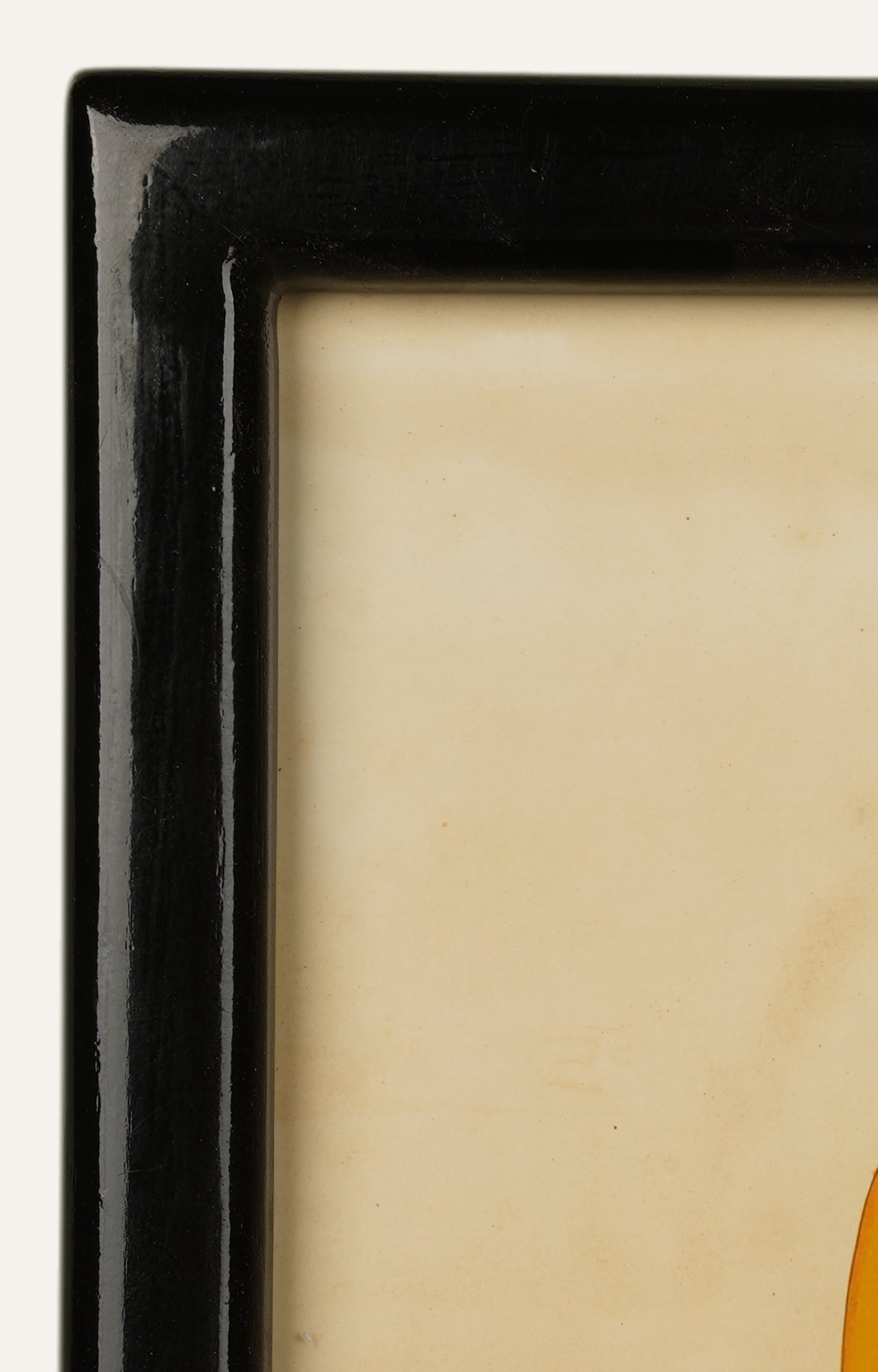 Depicting a soldier adorned with a royal insignia, this artwork symbolizes honor and loyalty. The delicate brushstrokes and vibrant hues bring out the depth of the character, making it a tribute to Rajasthan’s heritage.