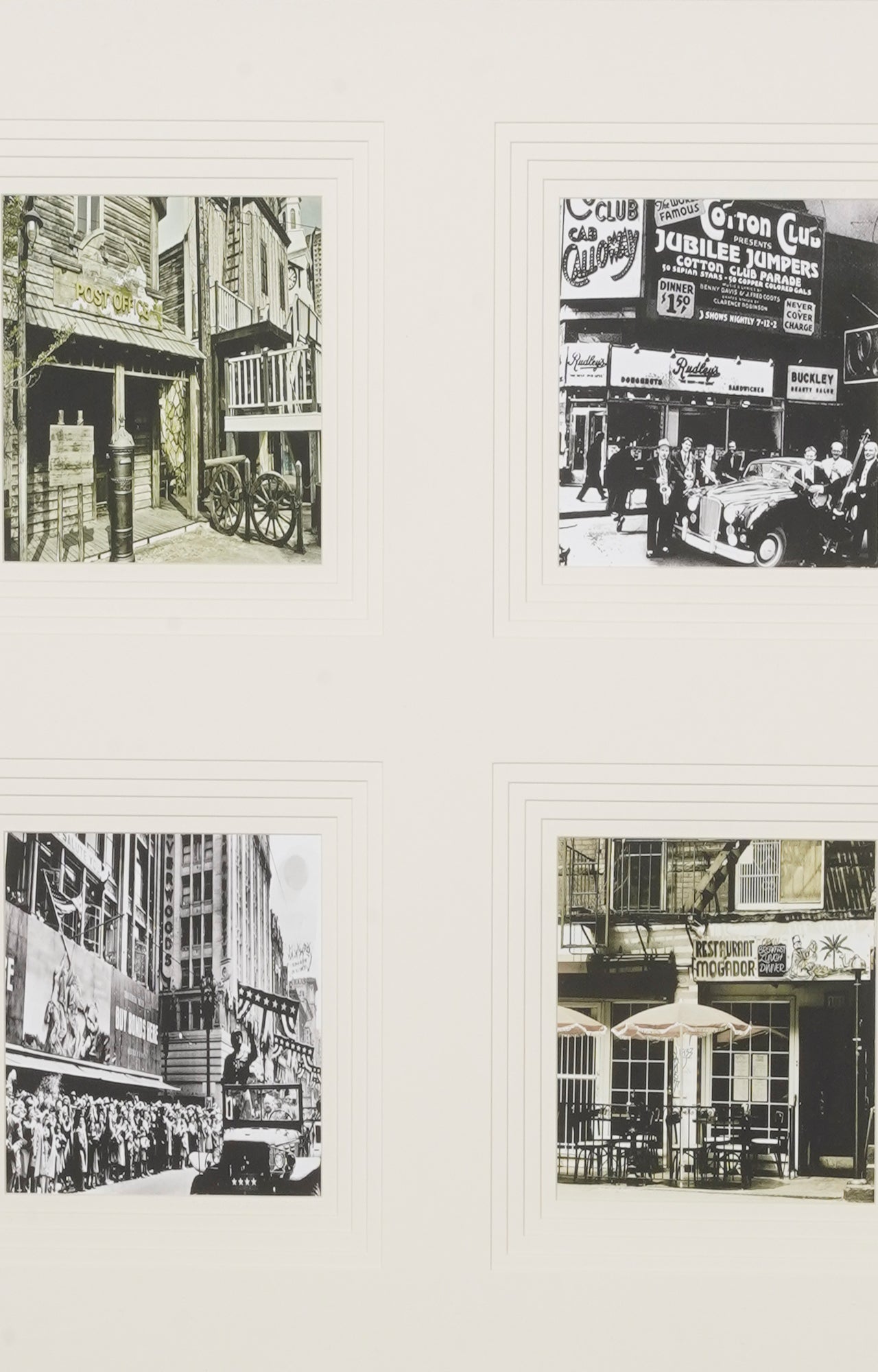 > Handmade stencil artwork with a retro 4-grid composition.
