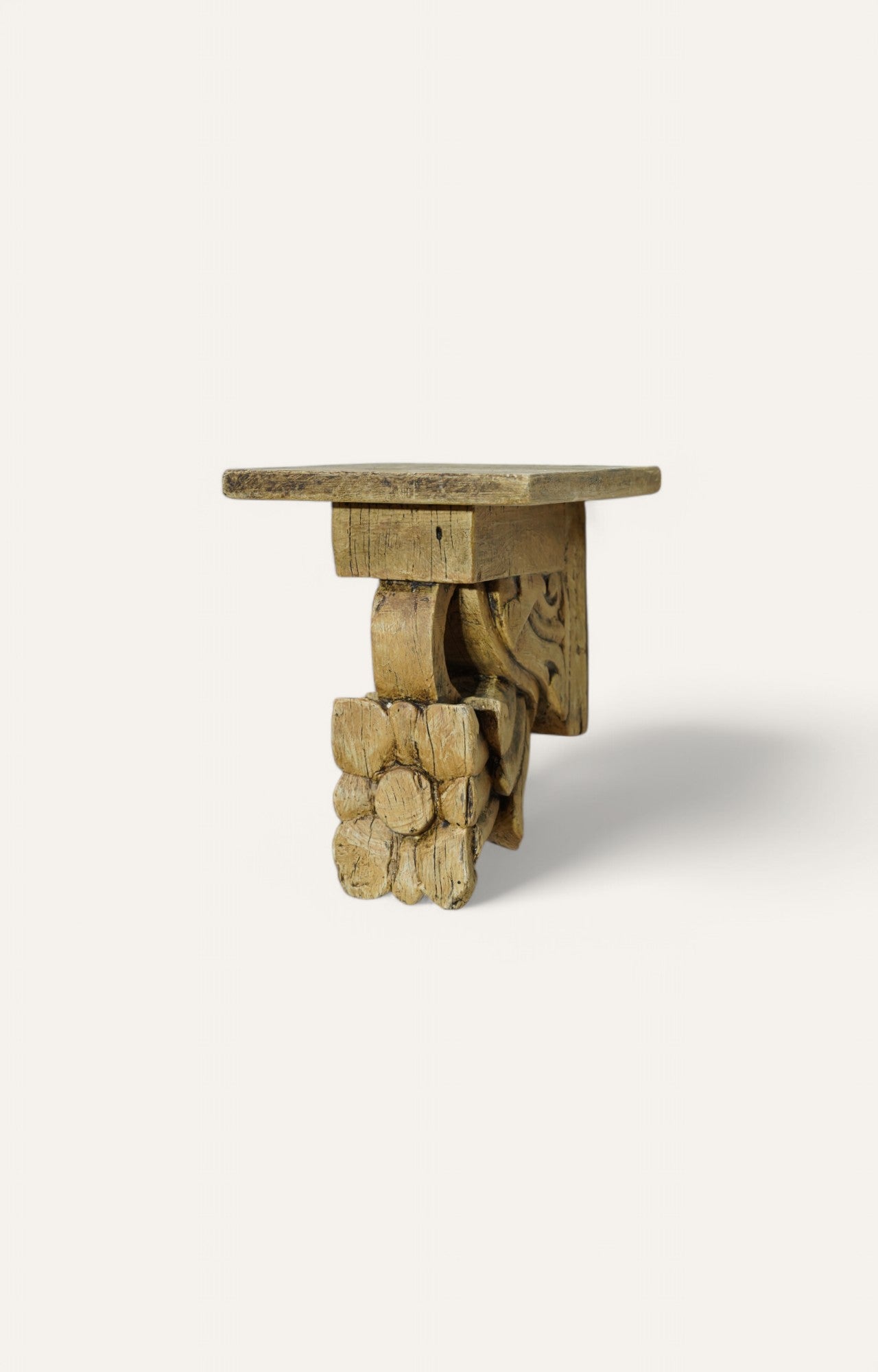 Vintage Hand Carved Wooden Wall Bracket Natural Distressed Finish Corbel Shelf Traditional Decor 40-50 Year Old Indian Handmade Wall Hanging