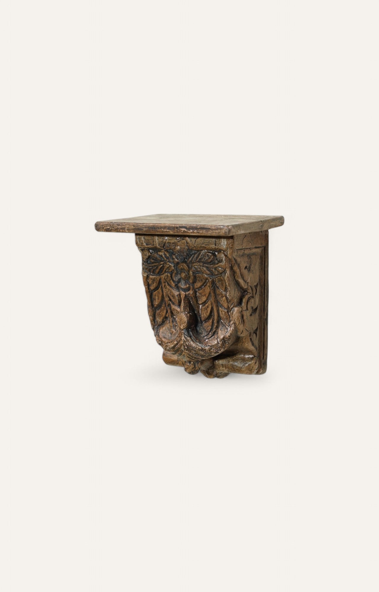 Vintage Hand Carved Wooden Wall Bracket Natural Distressed Finish Corbel Shelf Traditional Decor 40-50 Year Old Indian Handmade Wall Hanging