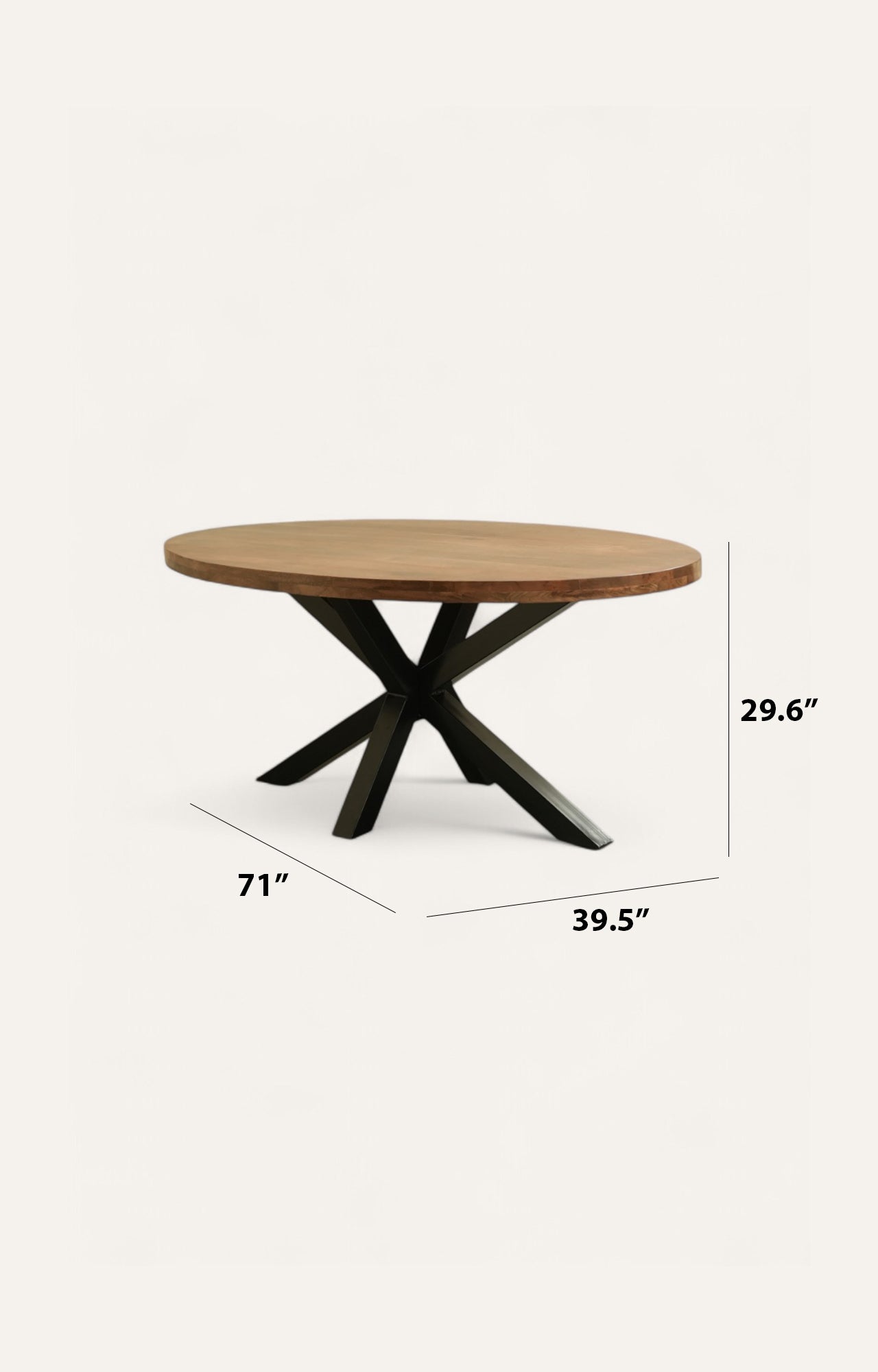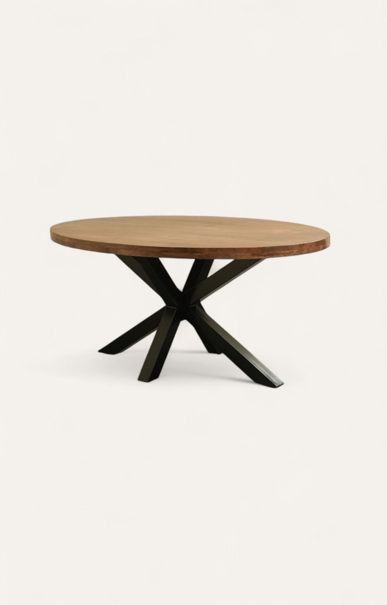 This chic yet classic dining table is designed for both vintage vibe and modern living. It perfectly merges the warm walnut-finished mango wood top with an industrial-inspired X-base made of bold iron. Its industrial frame and clean lines make it equally suitable for loft-inspired spaces or elegant dining rooms. This table comfortably seats six to eight people and honors form and function in one go.